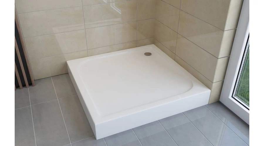 Szögletes, üvegszál erősítésű, alacsony akril tálca, integrált merevítéssel, szintező lábakkal és fali tartó konzollal. Kialakításának köszönhetően pontos állíthatóság és stabil , megbízható használat. 90x90x14 cm Szifon nem tartozék, külön rendelhető. Szifon átmérő 50mm. EU gyártmány